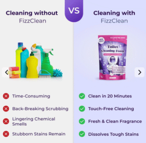 “FizzClean changed everything though! Takes 20 minutes tops and my toilet is cleaner than ever without any effort from me!”